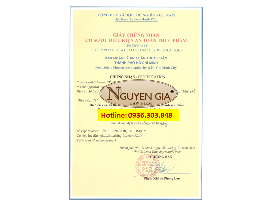 Luật Nguyễn Gia với hơn 9 năm kinh nghiệm trong việc tư vấn - lập hồ sơ làm giấy phép vsattp trọn gói trên địa bàn Thành phố Hồ Chí Minh. (Liên hệ Hotline: 0936.303.848 Mr. Hùng)