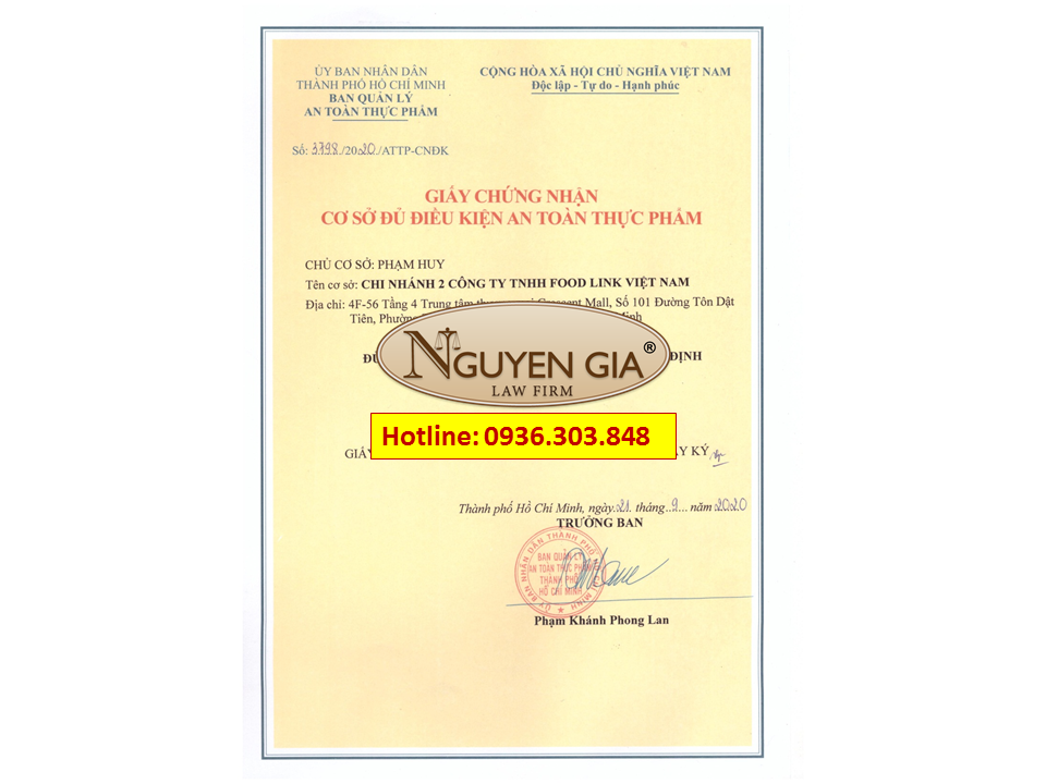 Luật Nguyễn Gia với hơn 9 năm kinh nghiệm trong việc tư vấn - lập hồ sơ xin giấy phép an toàn thực phẩm trên địa bàn Thành phố Hồ Chí Minh. (Liên hệ Hotline: 0936.303.848 Mr. Hùng)